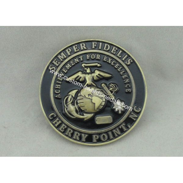 3D SEMPER FIDELIS Personalized USA Navy Coin by Brass Die Struck And Antique Brass Plating